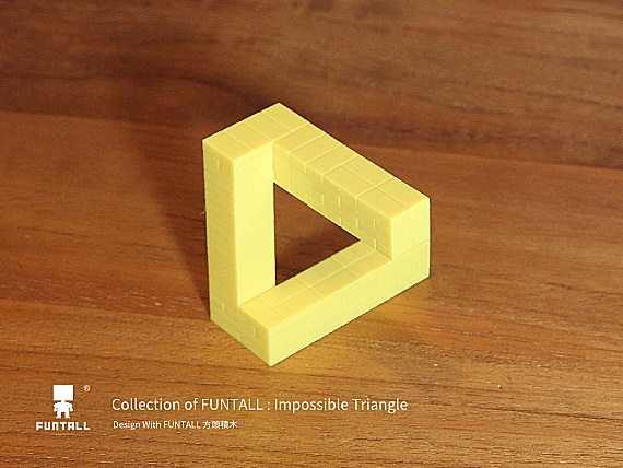 你發現這款三角形的神祕之處嗎? 利用方頭積木的正方體結構的特性,玩家組裝出這組不可能的 三角形 (Impossible Tribar)。